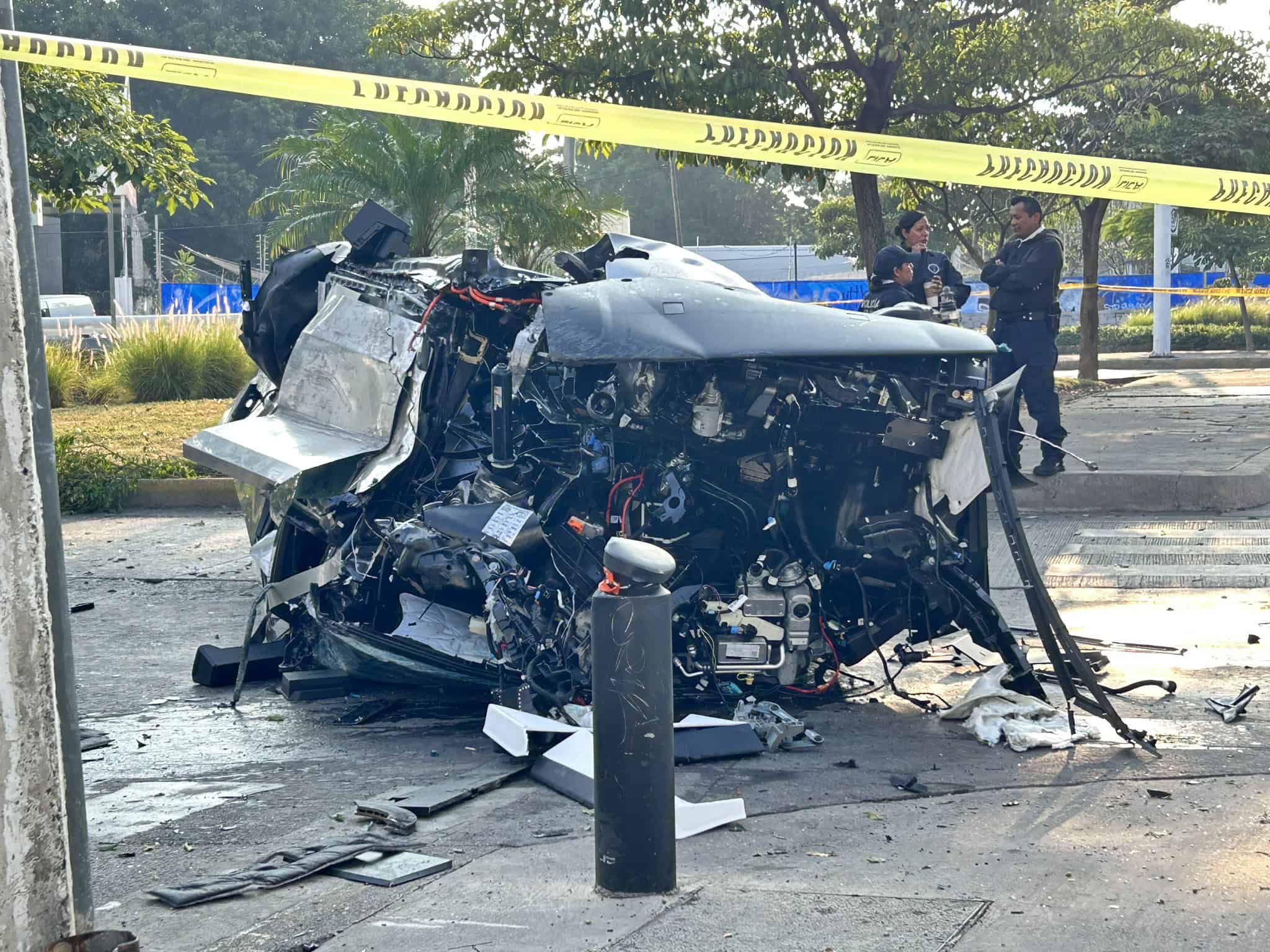 La camioneta eléctrica de alta gama quedó despedazada luego de un fuerte choque, dejando como saldo cuatro personas lesionadas.