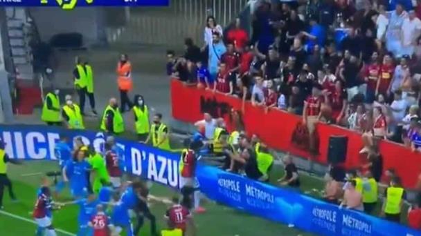 Cuando el Marsella se encontraba arriba en el marcador al minuto 73, aficionados del Niza comenzaron a arrojar objetos desde las gradas a los futbolistas visitantes, los cuales respondieron con enojos, devolviéndoles los objetos, lo que ocasionó la invasión de decenas de personas, agresiones, y la posterior suspensión del encuentro, por lo que las autoridades ya tomaron acciones legales ante este hecho.