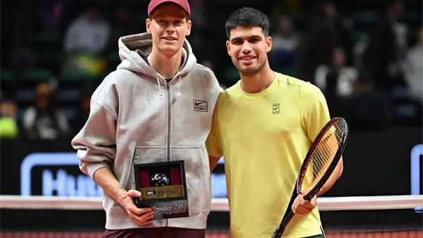 Carlos Alcaraz abrió su actividad en 2026 con una victoria sobre Jannik Sinner por 7-5 y 7-6, en un partido de exhibición disputado en Corea del Sur.