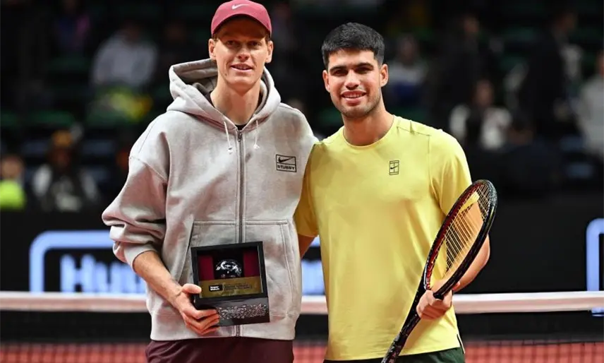 Alcaraz vence a Sinner en juego de exhibición, previo al Australian Open