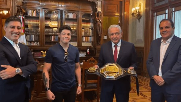 Este martes, el presidente Andrés Manuel López Obrador recibió al campeón mexicano de Artes Marciales Mixtas, Brandon Moreno, a quien destacó por su mensaje de que, pese a la adversidad, los objetivos se pueden lograr.