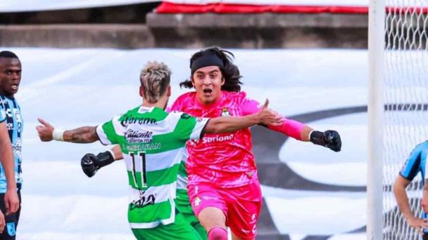 El portero del Santos, Carlos Acevedo, anotó un gol de último minuto para empatar el partido que perdían ante el Querétaro en el estadio La Corregidora.