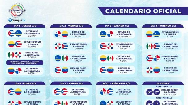 La Serie del Caribe se celebrará del 2 al 10 de febrero en Caracas, Venezuela, en los estadios La Rinconada y el de la Guaira, con horarios variados, iniciando 10:30 de la mañana y el más tarde, comenzando a las 19:30 horas.