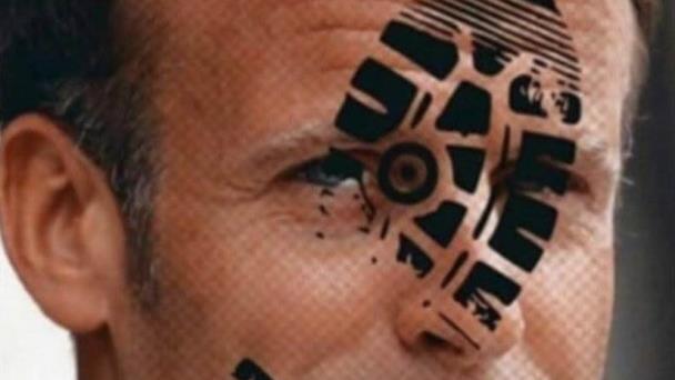 Los comentarios fueron acompañados de una fotografía en la que se observa a Macrón con la marca de una suela de zapato sobre su cara.