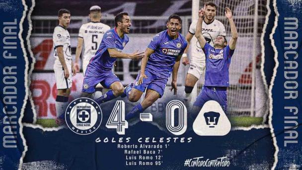 Cruz Azul pasa por encima de Pumas 4-0 en Semis de Ida