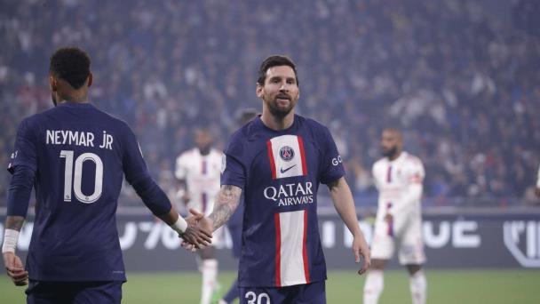 Hubo otra gran jugada de Messi, en un tiro libre que pegó en el larguero, ahogando los gritos de festejos de aficionados del PSG que viajaron hasta Lyon.