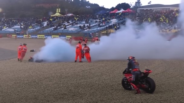Un fuerte accidente en el Gran Premio de Portugal del Moto2 ocasionó lesiones en 11 motociclistas y hasta un incendio que involucró dos vehículos.