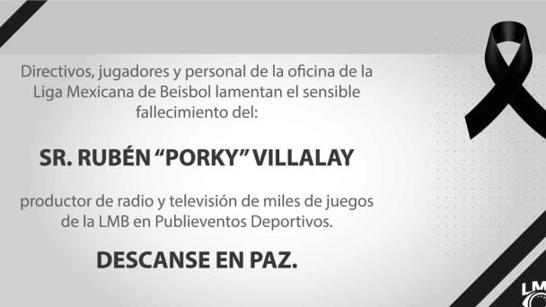 “Directivos, jugadores y personal de la oficina de la Liga Mexicana de Beisbol, y de los 18 clubes que la componen, lamentamos el fallecimiento de Rubén Moreno Villalay”, se lee en el comunicado.