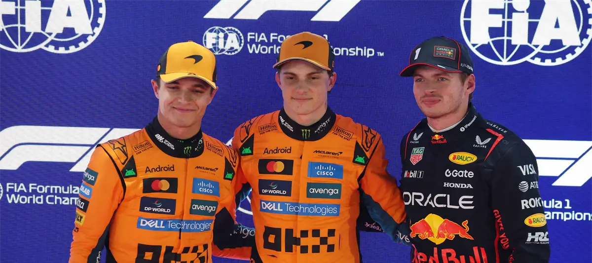 Por su parte, Max Verstappen, quien también sigue en la contienda por el campeonato de pilotos, tuvo que conformarse con el tercer puesto de la parrilla tras marcar un tiempo a 0,264 segundos del 1:19.387 de Piastri y a 0,156 segundos de Norris.