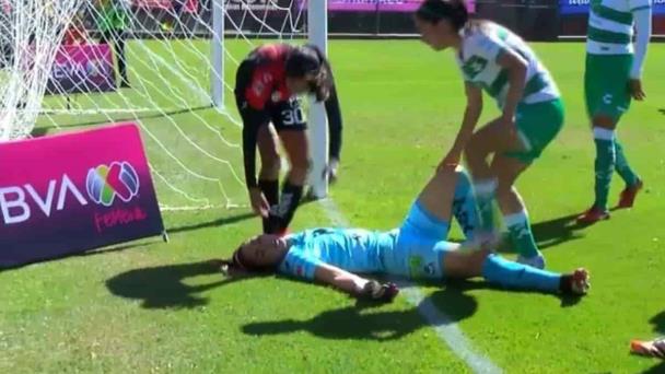 Portera de Santos Femenil sufre accidente en partido contra Atlas y así continuó el juego