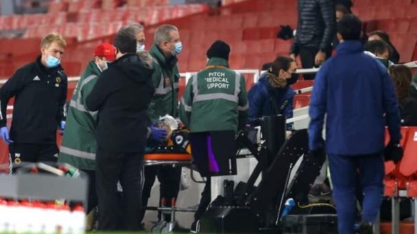 Raúl Jiménez sale en camilla e inmóvil en el partido contra el Arsenal