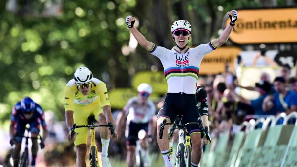 El ciclista esloveno Tadej Pogacar y actual campeón del Tour de Francia, superó a Mathieu Van der Poel, imponiéndose en la cuarta etapa y consiguiendo la victoria número 100 de su carrera.
