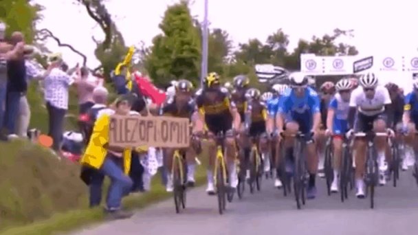 Durante la primera etapa del Tour de Francia, la espectadora, que se encontraba apoyando el evento con una pancarta, se atravesó en el camino de la competencia, y, sin darse cuenta, fue arrollada por el pelotón, lo que provocó la caída de múltiples ciclistas, 45 kilómetros antes de llegar a la meta, que ocasionó cambios importantes en los resultados, así como lesiones que sufrieron los deportistas.