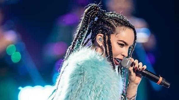 La cantante salió al escenario con trenzas en el cabello, con cejas delgadas y un mini short y top que dejó ver todos los tatuajes que le realizaron.