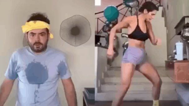 El Youtuber, hijo de Eugenio Derbez, subió un video a la red social Tik Tok, donde con cerveza en mano, trató de seguir los ejercicios de la coach.