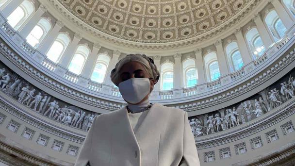 La también compositora ensayó la participación que tendrá durante el evento, será la encargada de interpretar el himno nacional, y aprovechó para compartir una fotografía desde el recinto y un mensaje, en el que reza por que la toma de protesta del demócrata esté llena de paz y amor.