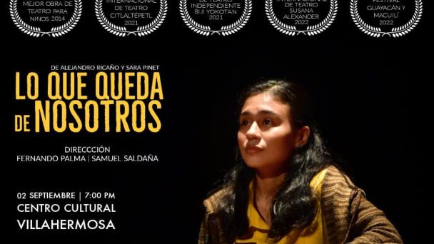 El próximo 2 de septiembre se presentará en el Centro Cultural Villahermosa la puesta en escena ‘Lo que queda de nosotros’, de Alejandro Ricaño y Sara Pinet, bajo la dirección de Fernando Palma y Samuel Saldaña.