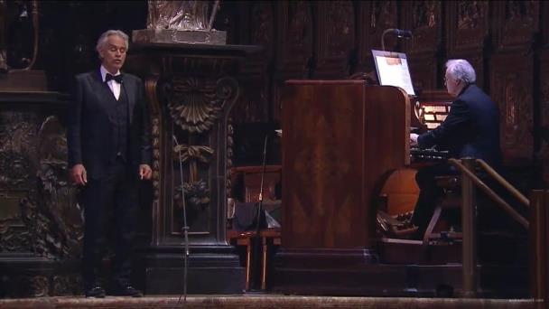 El tenor italiano, Andrea Bocelli, interpretó un concierto en ocasión de la Pascua, con temas elegidos del repertorio de música religiosa en la Catedral de Milán, que esta ocasión lució vacía por la emergencia sanitaria en el país.