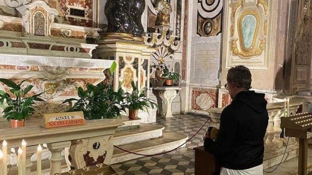 Ora Alejandro Fernández por su padre frente a Nuestra Señora del Carmen