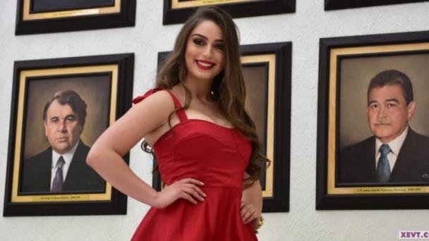 La bella joven salió al salón de Ayuntamiento cobijada por sus padres, el Ing. Alejandro Sánchez y Raquel Peralta, así como por autoridades municipales, encabezadas por el presidente municipal, Evaristo Hernández Cruz.