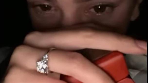 En el breve video se ve a Rosalía muy emocionada, mostrando el diamante y la cajita de color rojo; luego limpiándose las lágrimas y diciendo “todo el rímel aquí corrido. Te amo”, para después besar a Rauw.