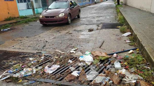 Las lluvias registradas en los últimos días, han arrastrado una gran cantidad de basura a las alcantarillas de la colonia Gaviotas Norte, como es el caso en las calles Choco Tabasqueño y Antonio de Dios. Lo que pone de manifiesto cuánta basura existe en las calles y que termina poniendo en riesgo a las mismas personas que la tiran.