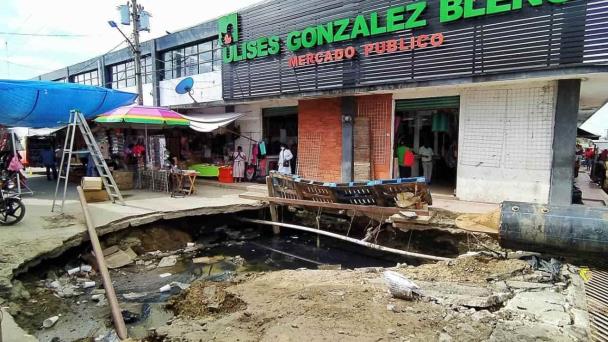 La encargada de un comercio frente al mercado público Ulises González Blengio, asegura que sus proveedores no tienen donde estacionarse y los clientes no acuden a su local porque es casi imposible caminar por calle Reforma, destrozada en diversos puntos.