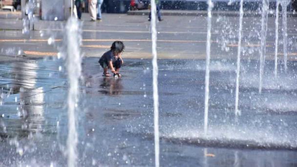 Niños vuelven a jugar en las fuentes danzantes de Plaza de Armas