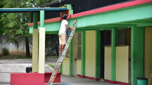 Padres de familia pintan y limpian la escuela Secundaria Técnica 47 de Villahermosa