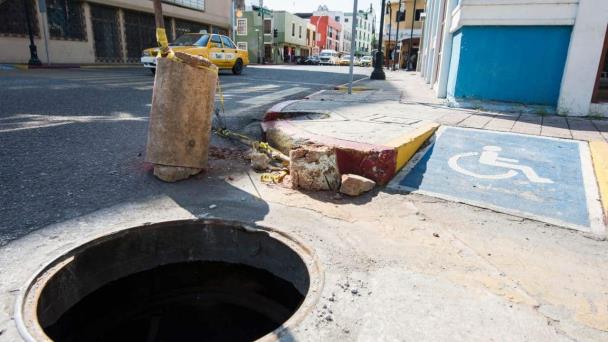 Peligroso registro de luz sin tapa en el centro de Villahermosa