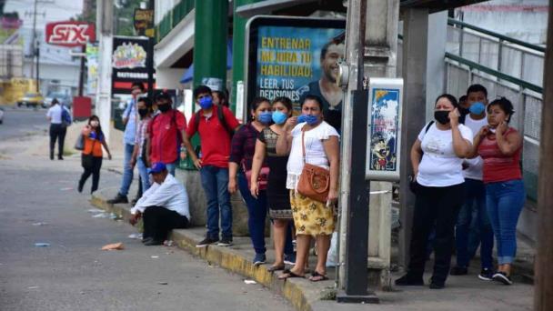 Por nuevas restricciones al transporte público, usuarios esperan por horas en paradas de Villahermosa