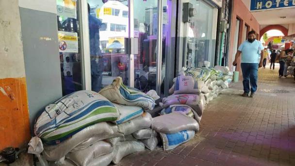 Pese a que el nivel del río Grijalva ha descendido y no se han presentando fuertes precipitaciones, muchos comercios de la zona Luz continúan con costales en sus entradas por precaución.