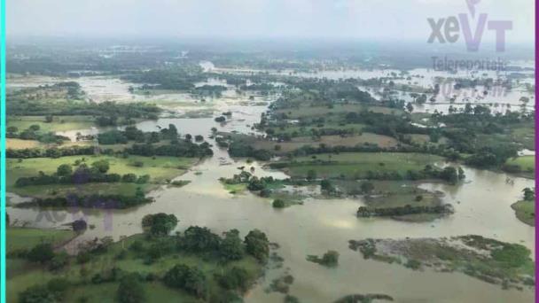 Este sábado un helicóptero de la Fuerza Aérea Mexicana realizó un sobrevuelo por las zonas afectadas de Tabasco.