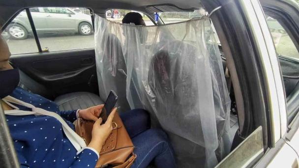 Taxistas colocan cortina de plástico en sus unidades para evitar contagio de COVID-19