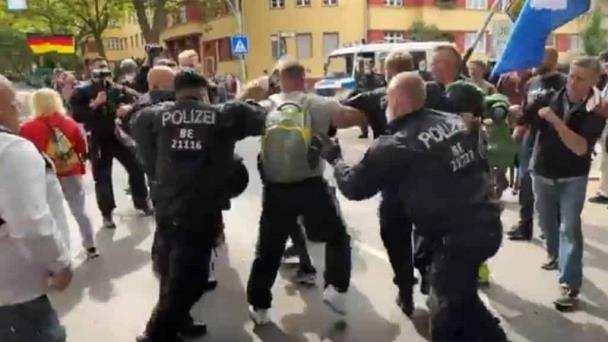 Por lo que se reportó que el Departamento de Policía de Berlín desplegó a más de 2 mil agentes para tratar de dispersar a los manifestantes.