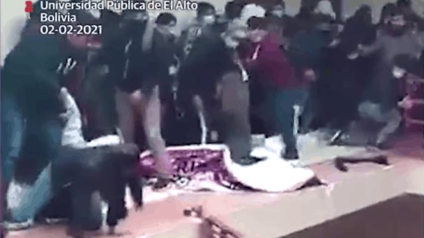 En la Universidad Pública de El Alto en Bolivia, siete estudiantes murieron y uno se encuentra gravemente herido, luego de que el barandal del cuarto piso se rompiera y quienes se encontraban recargados en él, cayeran.