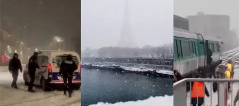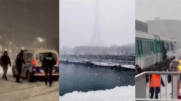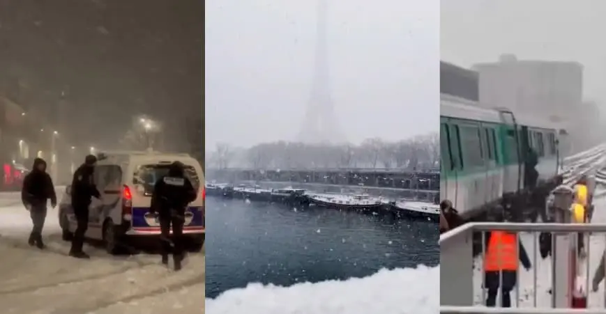 En París, la nieve y el mal tiempo han propiciado embotellamientos y la suspensión del flujo de buses, además de la cancelación de vuelos y dificultad del transporte público.