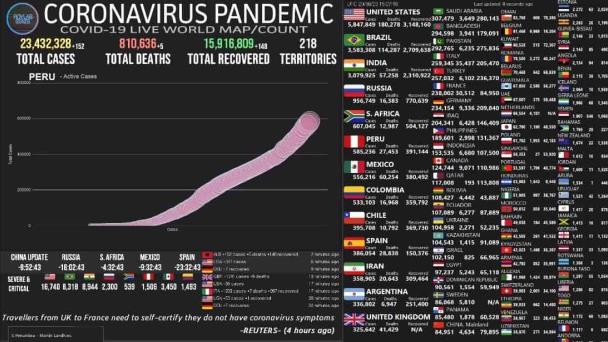 Hoy domingo el mundo reporta 23 millones 432 mil 328 casos de COVID-19, de acuerdo al contador Roylab Stats
