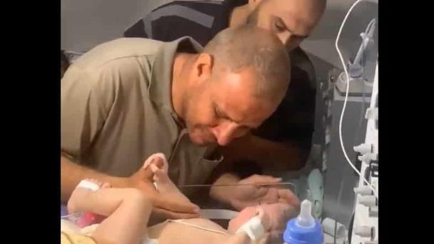 Las imágenes que conmovieron al mundo fue la grabación en donde se observa a un hombre palestino, de nombre Mohammed Al-Hadidi, quien contiene las lágrimas y acaricia a su bebé de 5 meses, después de perder a su esposa y otros tres hijos en los ataques aéreos israelíes en Gaza.