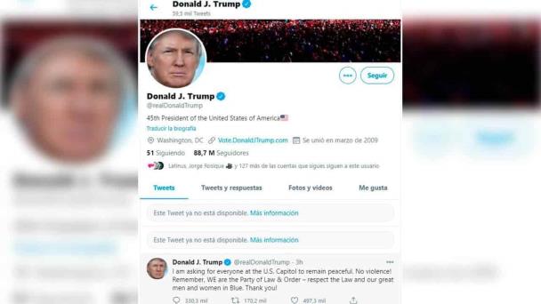 La red social Twitter, agregó nuevas advertencias a los tuits del presidente Donald Trump e incluso bloqueó las interacciones del video en que insta al cese de las protestas que se originaron en el Capitolio, ya que la plataforma ha considerado que podría existir un riesgo de violencia.