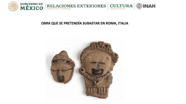 Las autoridades de Italia cancelaron una subasta organizada por el sitio de ventas Casa Bertolami Fine Arts, en la ciudad de Roma, Italia, y en la cual se ofertaban a la venta 17 piezas que forman parte del patrimonio arqueológico de México.