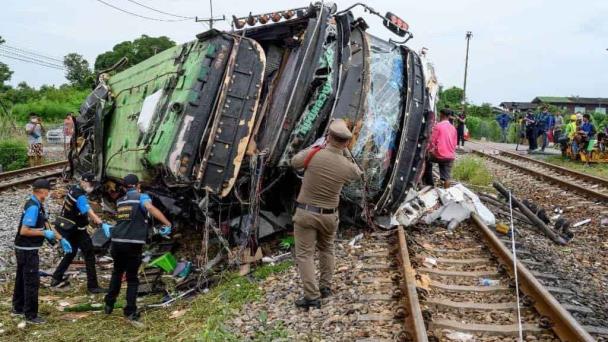 Choque entre autobús y tren deja 18 muertos y 40 heridos en Tailandia