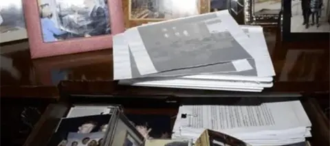 En estos había imágenes de pinturas que representaban mujeres desnudas y una que mostraba una serie de fotografías a lo largo de un aparador, en una de ellas aparecía Trump junto a Epstein, Melania Trump y Ghislaine Maxwell, colaboradora del magnate.