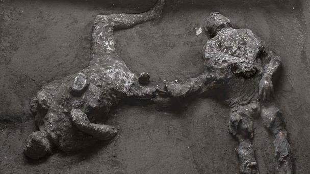 De acuerdo con las autoridades, podría tratarse de un hombre y su joven esclavo, quienes intentaban huir del lugar cuando el volcán hizo erupción.
