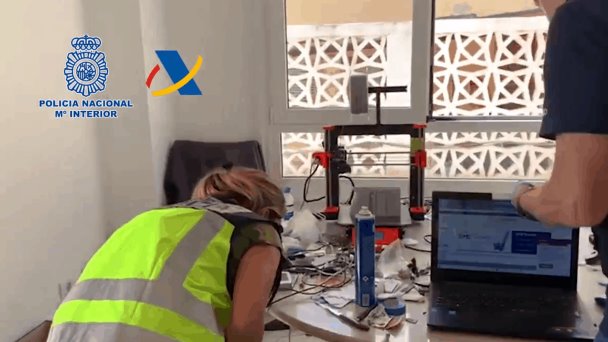 El operativo donde también decomisaron 11 bobinas de filamento para impresoras 3D y numerosos dispositivos informáticos para la réplica de fusiles, fue realizado por la Policía Nacional y funcionarios de la Agencia Tributaria de España.