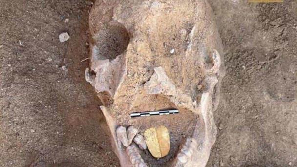 En Alejandría, al norte de Egipto, arqueólogos desenterraron a una momia de más de dos mil años, la cual en el interior de su boca tenía una lengua de oro.