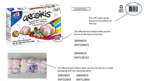 La Administración de Alimentos y Medicamentos de los Estados Unidos (FDA, por sus siglas en inglés) anunció el retiro del mercado de las galletas de bombón “Arcoiris”, por posible presencia de salmonela.