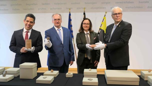 Las piezas son dos estatuillas de barro de la civilización teotihuacana, y fueron recibidas por el embajador de México en Alemania, Francisco Quiroga, de manos del ministro del estado Sajonia-Anthalt, Reiner Haseloff, y la viceministra Michelle Müntefering.