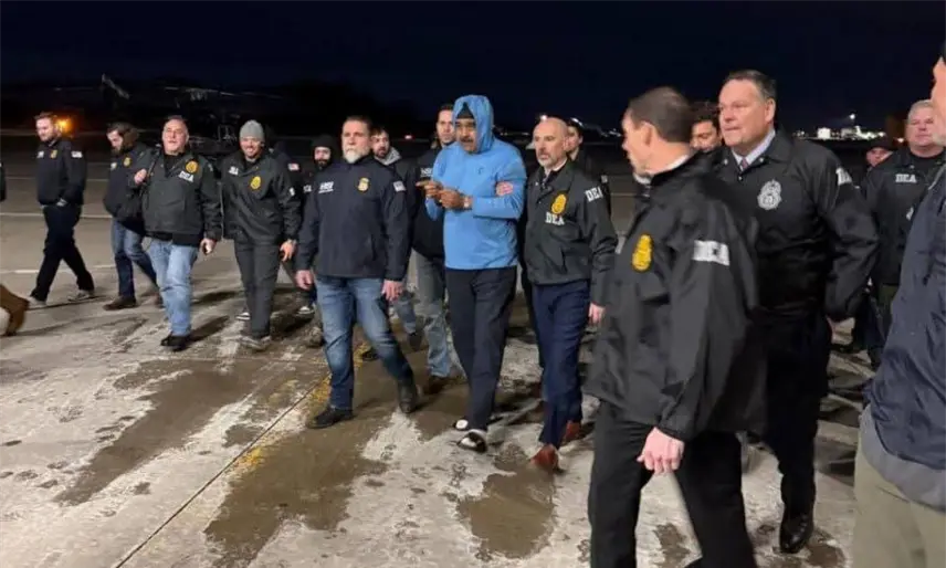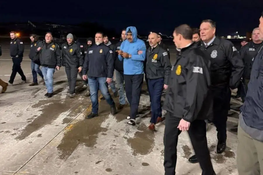 Según información oficial, Maduro Moros junto con su esposa, Cilia Flores, fueron sacados del Palacio de Miraflores y trasladados al Aeropuerto Internacional Stewart al norte de "La Gran Manzana".