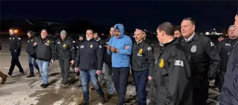 Posteriormente fue llevado en helicóptero a las instalaciones de la DEA en Manhattan, donde fue tomado un video en el que se le escucha decir: "Good night and happy new year".